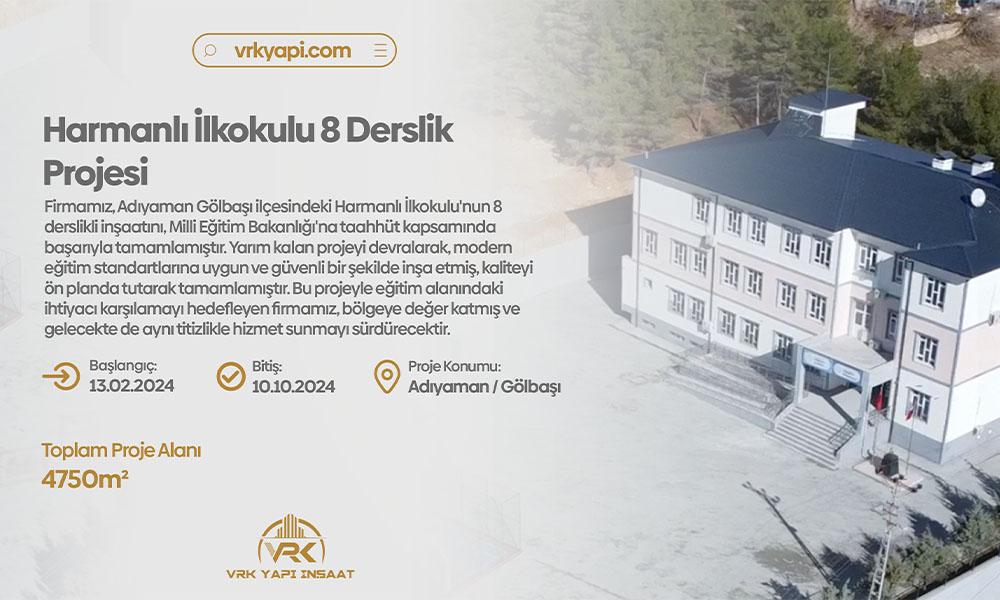 Harmanlı İlkokulu 8 Derslikli İnşaat Projesi